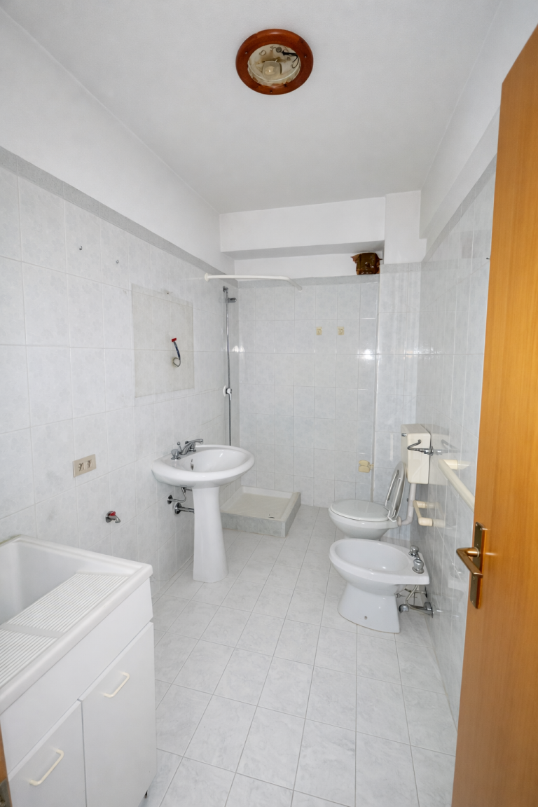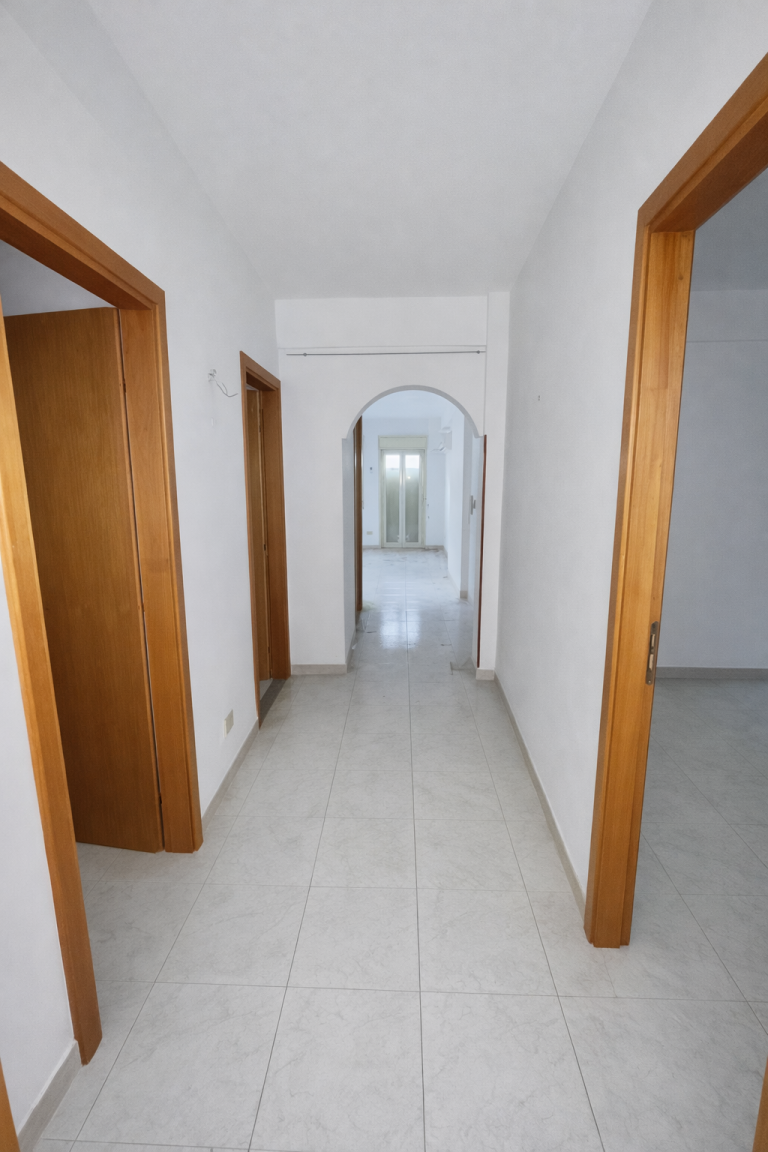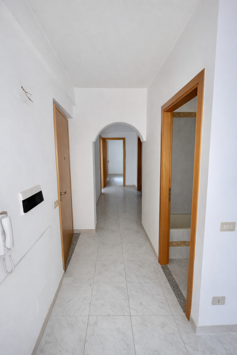 L'immobile si trova al primo piano di una palazzina, si sviluppa su 108 mq. ed è composto da ingresso-saloncino provvisto di balcone, cucina abitabile, due camere da letto, due servizi e ripostiglio, due esposizioni.