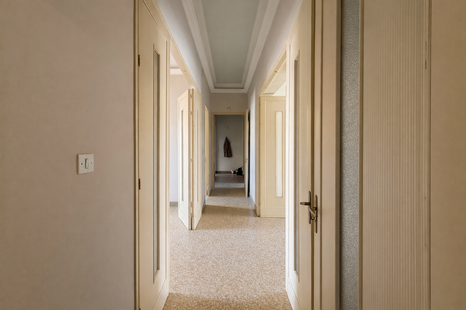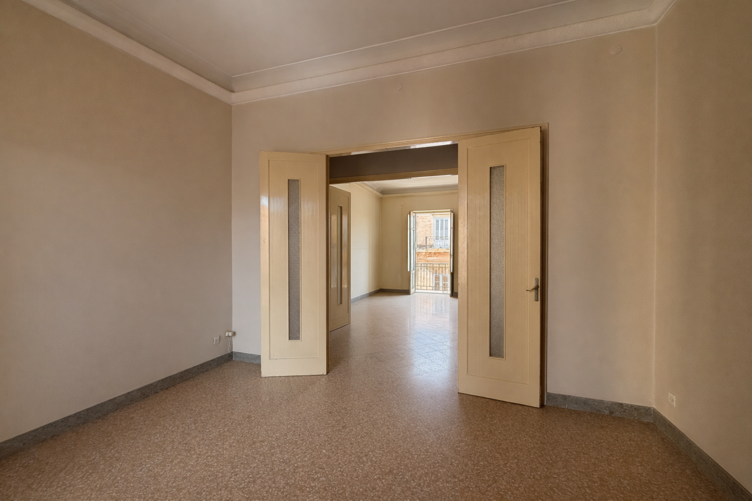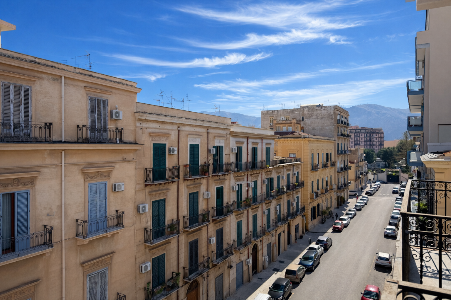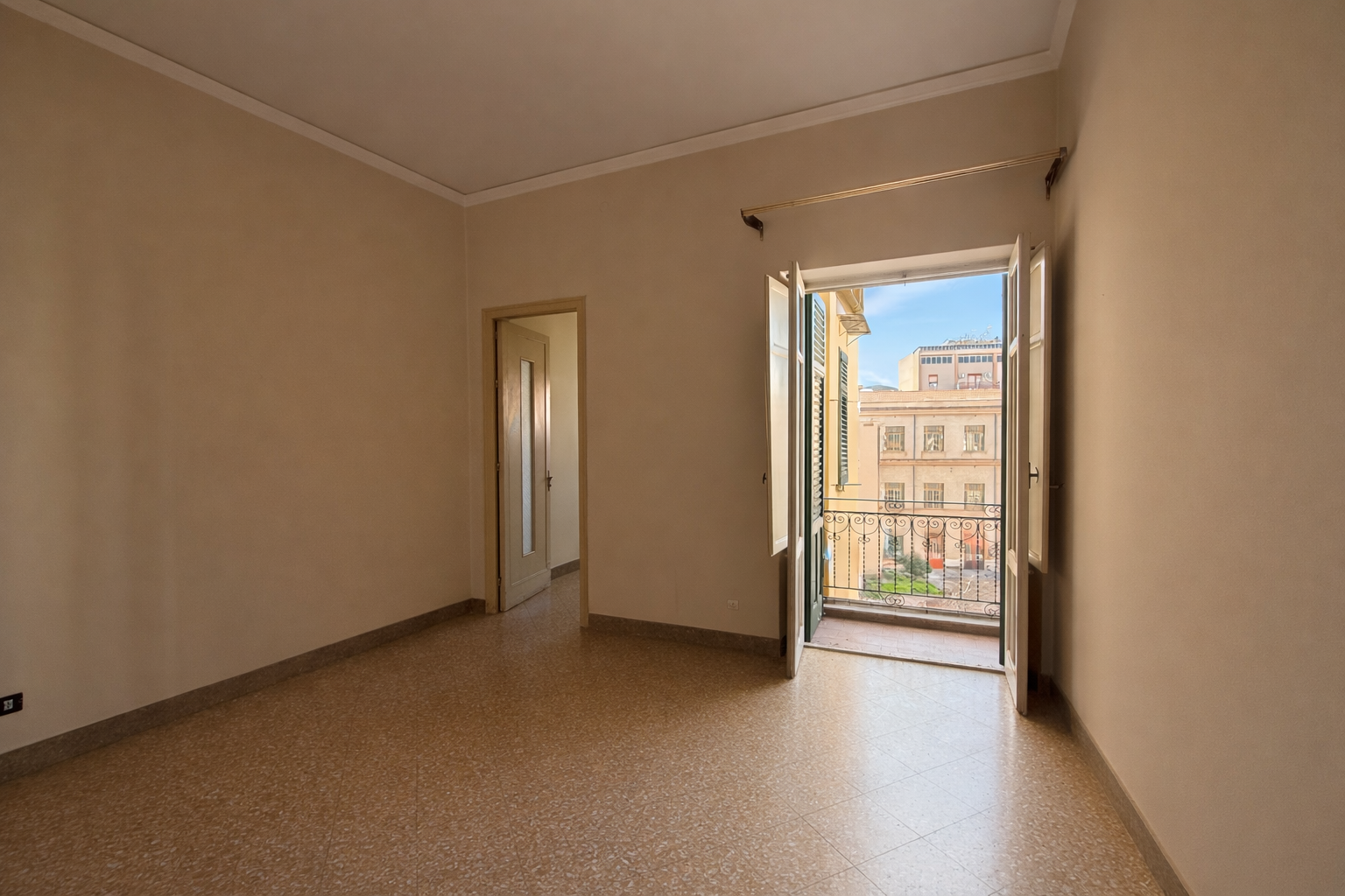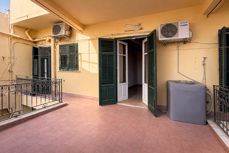 La proprietà è composta da sala d'ingresso, tre camere con balconi su via Cuba, altre tre camere si affacciano sul retroprospetto con ampio e gradevole terrazzo, cucina con anticucina, ripostiglio e servizio con vasca.