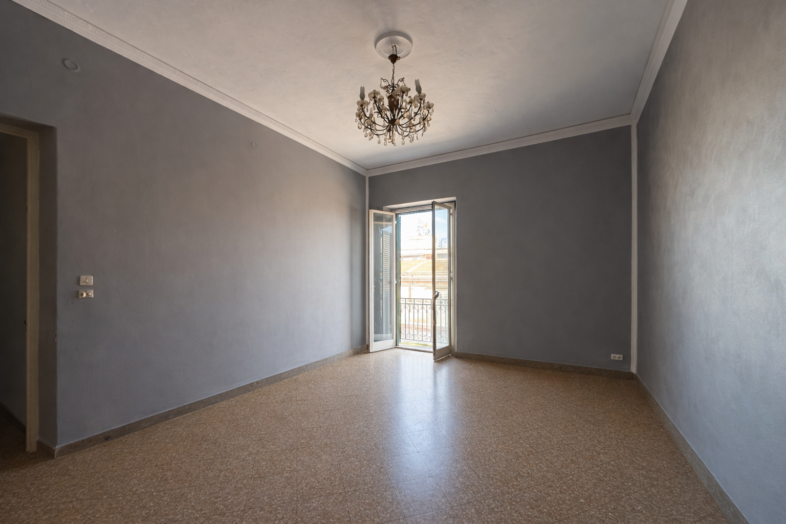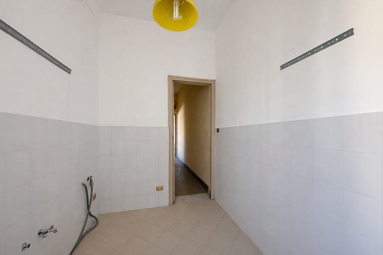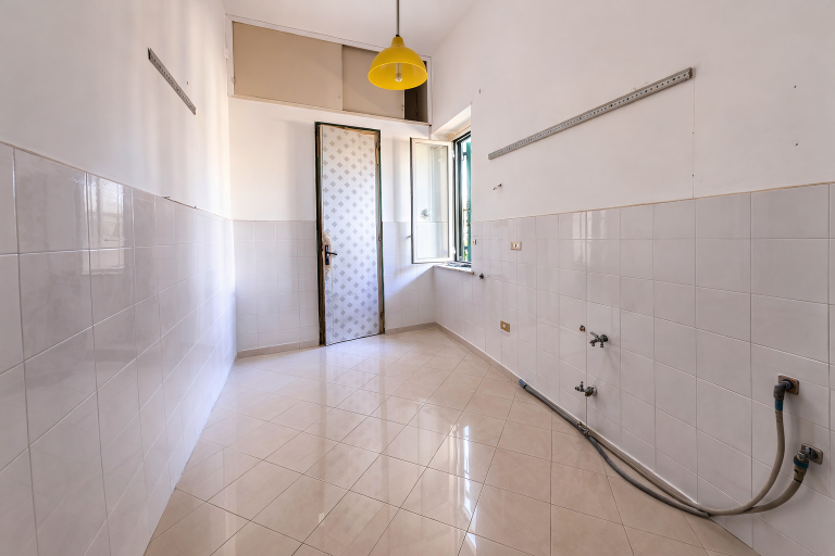 L'immobile ha una superficie coperta di 96 mq. comprende sala d'ingresso, tre camere con balconi su via Cuba, corridoio di disimpegno che collega con l'ambiente cucina e servizio.