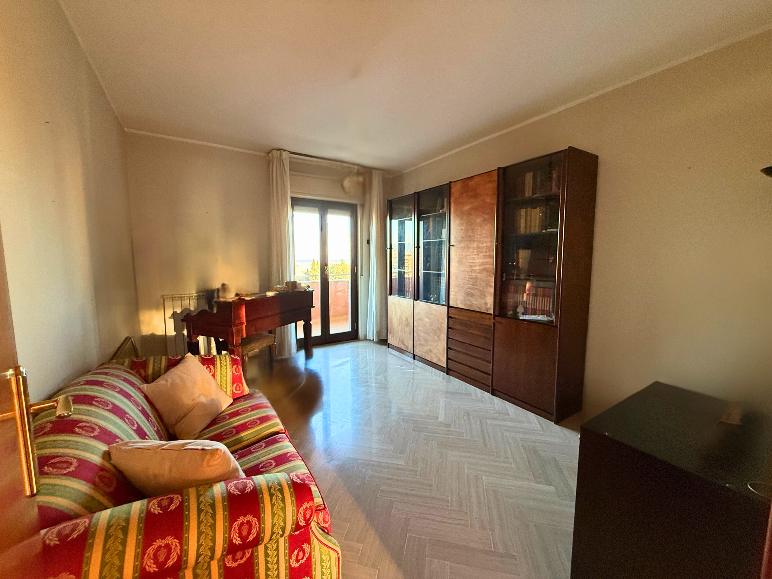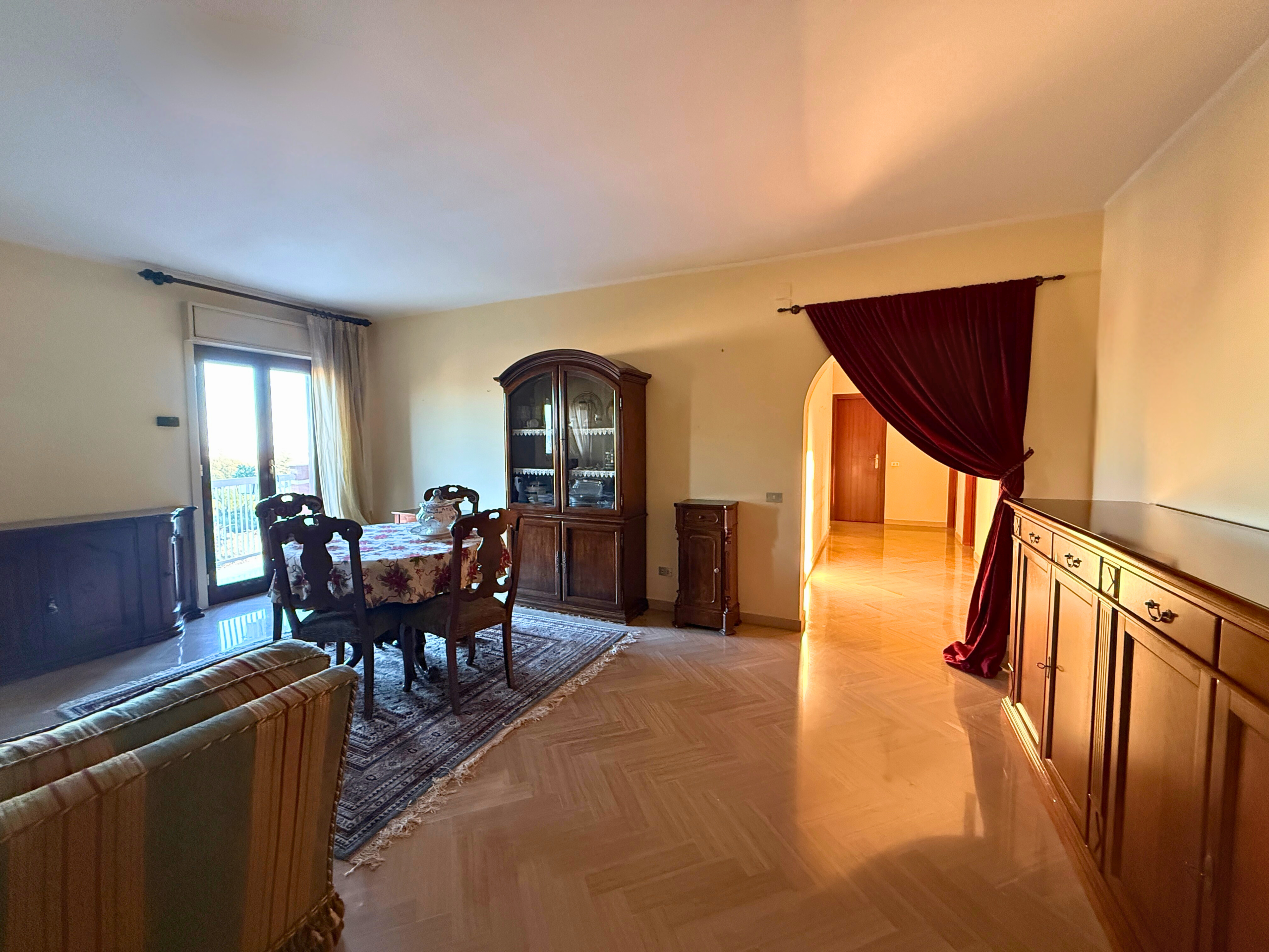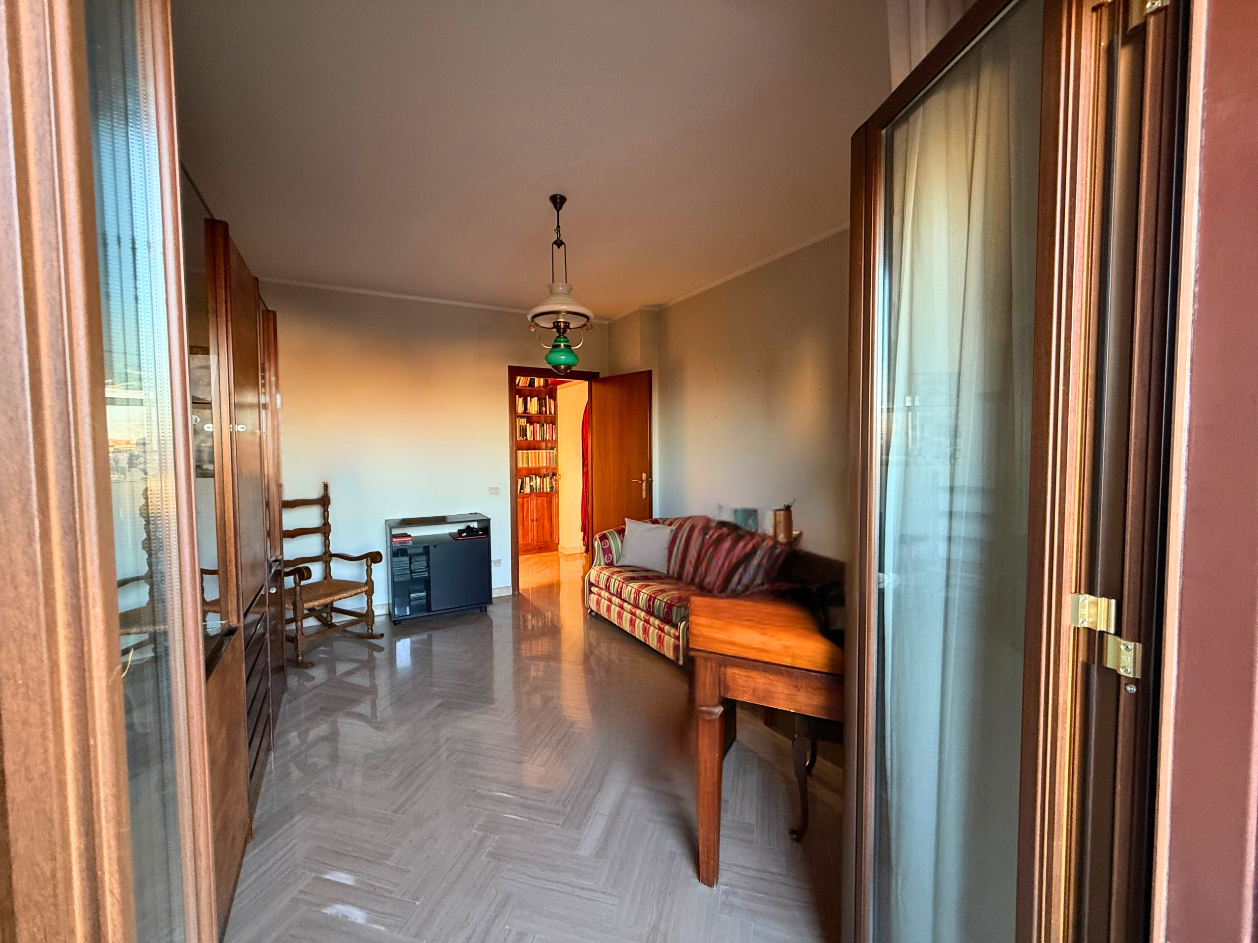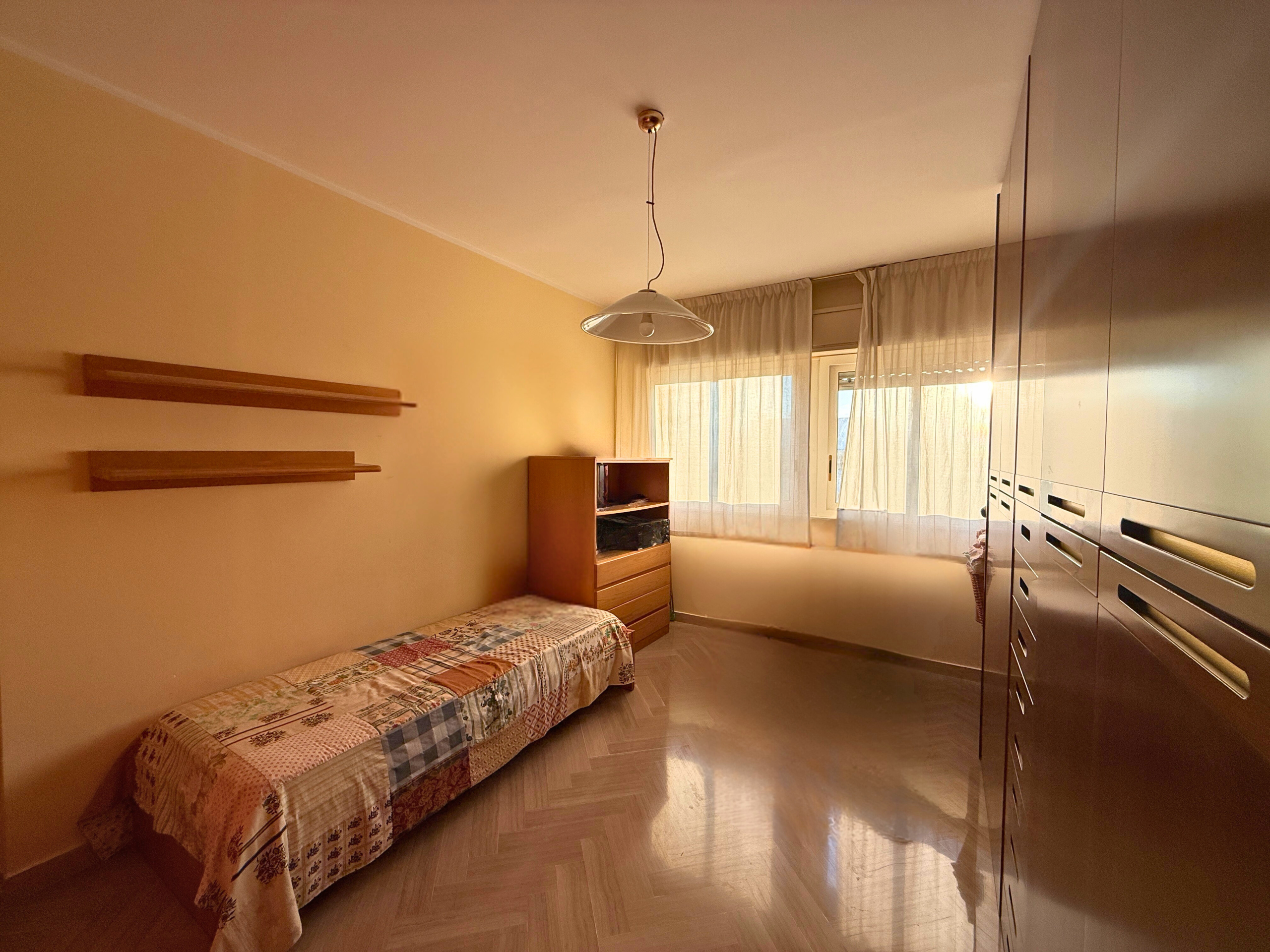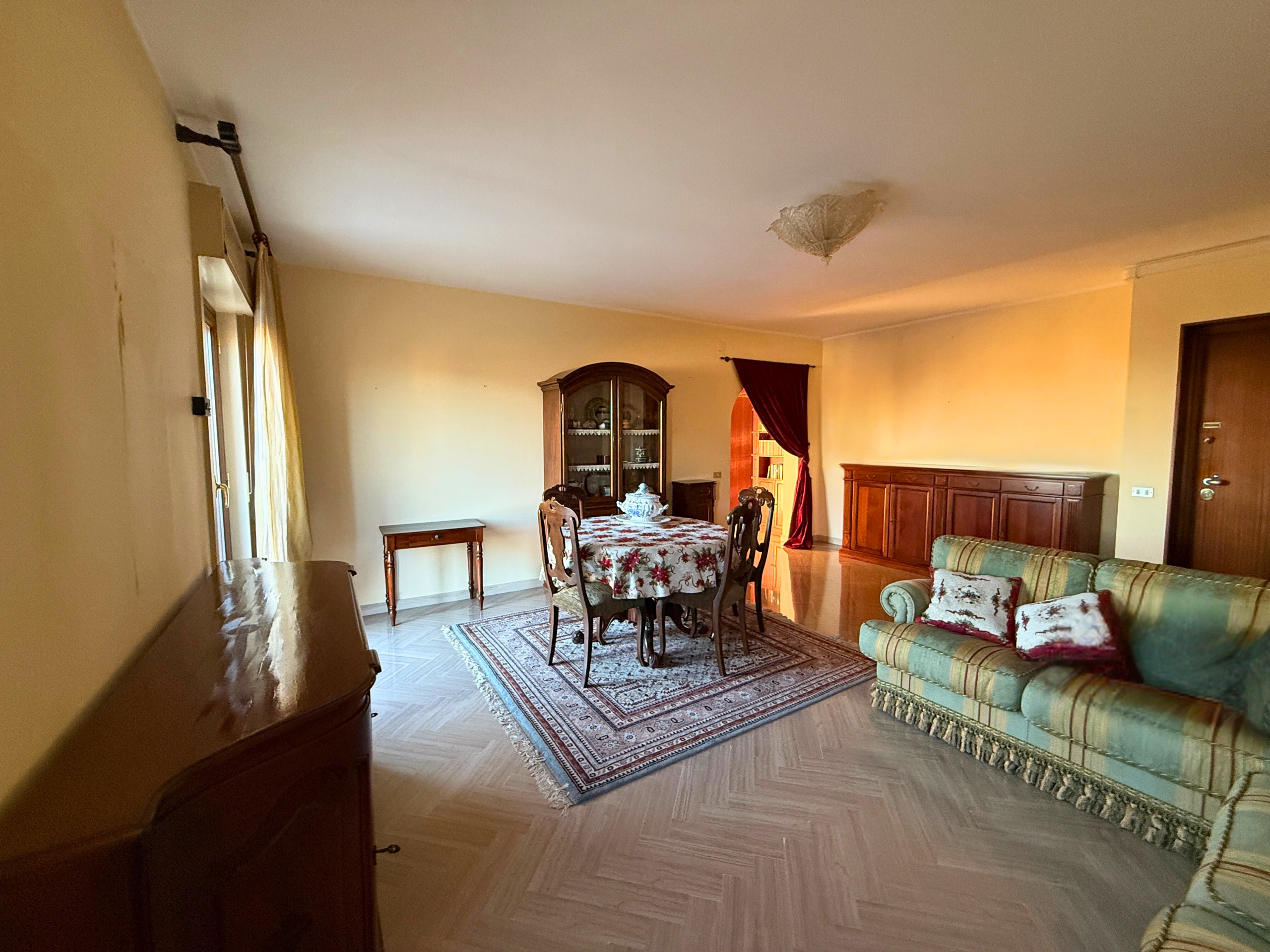 L'appartamento in buone condizioni, ha una superficie coperta di mq. 156, composto da salone, tre camere, cucina abitabile con balcone, ripostiglio e doppi servizi, gode di riscaldamento autonomo e video citofono