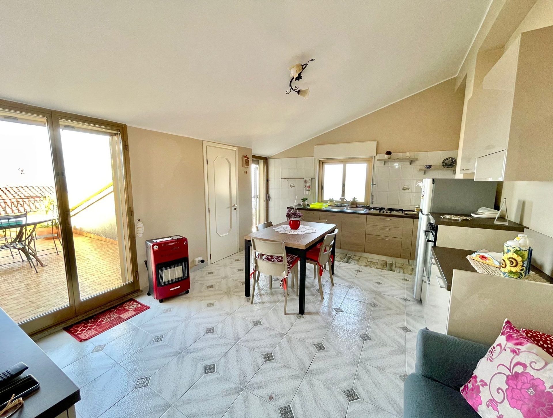 Santo Stefano di Camastra, in via Libertà n. 4/b, proponiamo in vendita, luminoso, panoramico appartamento mansardato, al piano quarto di una palazzina costruita nel 1985 senza ascensore, immobile con terrazzo, molto panoramico con vista mare.